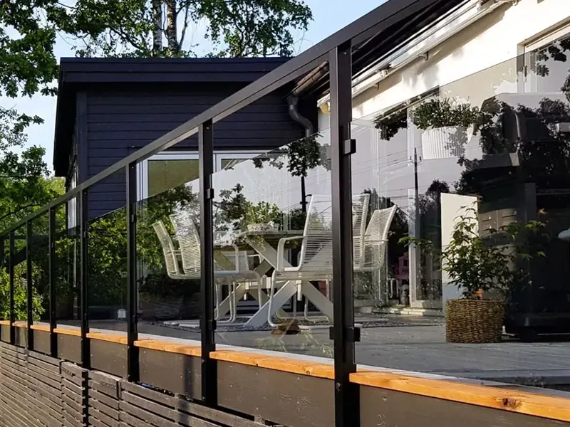 ● 住宅用テラスおよびバルコニー: 外観と安全性の両方を重視した、現代住宅、別荘、タウンハウス用の屋外プラットフォーム エンクロージャ