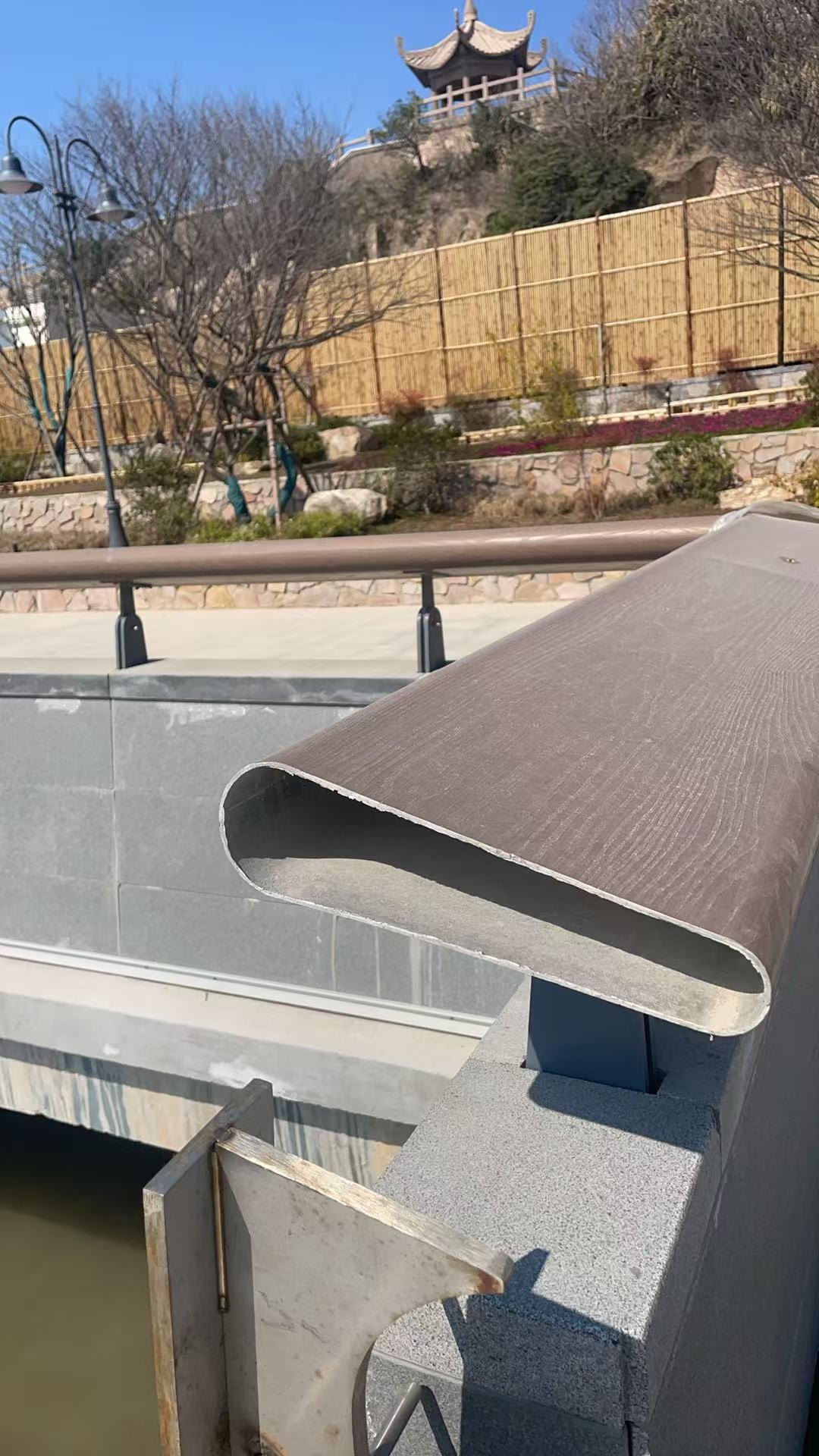 このプロジェクトではアルミニウム合金素材を採用し、木目転写技術により天然木に近い視覚効果を実現しました。従来の無垢材の手すりと比較して、アルミニウム合金は優れた耐食性と長寿命を備えているため、塩分濃度の高い海岸環境に特に適しています。